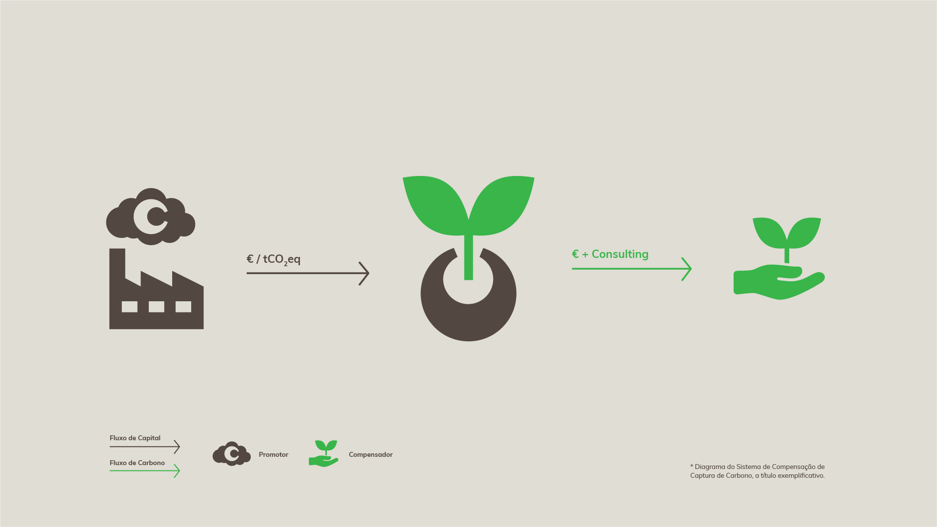 Existem dois agentes essenciais no nosso sistema: o Promotor e o Compensador. Pretendemos tornar evidente a conexão entre cada euro investido e o seu impacto real na captura de carbono, monitorizando periodicamente os solos intervencionados.